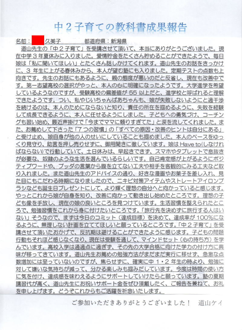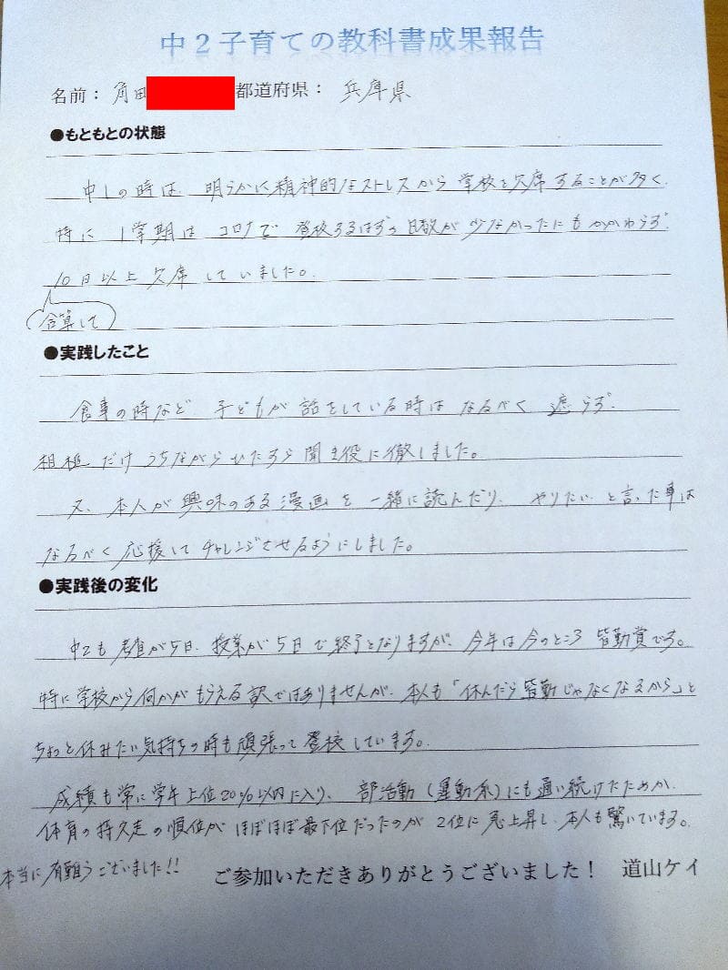 - 不登校だった子が学校に行けるようになり、5教科合計462点獲得